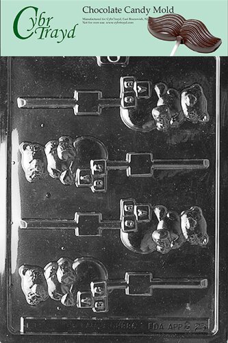 Cybrtrayd Life of the Party B029 Bears on Blocks Lolly Baby Chocolate Candy Mold in Sealed Protective Poly Bag Imprinted with Copyrighted Cybrtrayd Molding Instructions