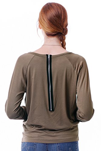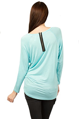 Ladies Dolman Long Sleeves Boat Neck Rayon Jersey Top with Zipper Detail on the Back