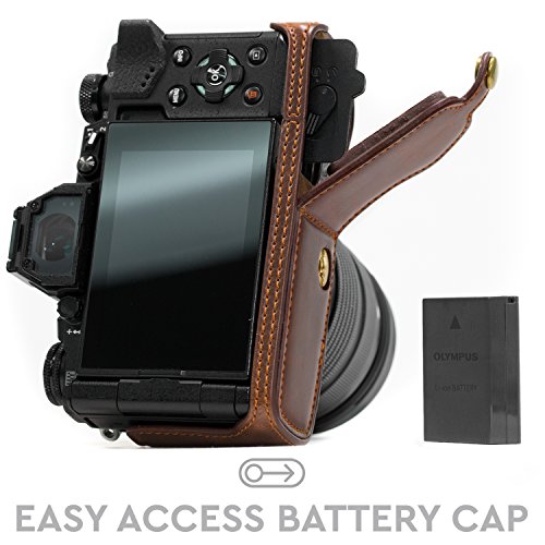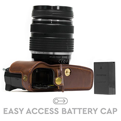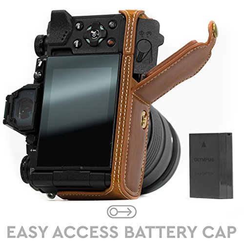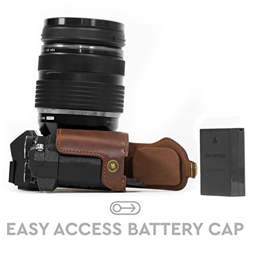 MegaGear Ever Ready Leder Boden Halfte Kameratasche, Tasche (Untere Offnung Version) - Schutzhulle fur Olympus OM-D E-M5 Mark II
