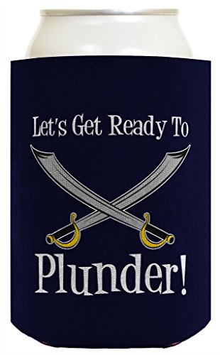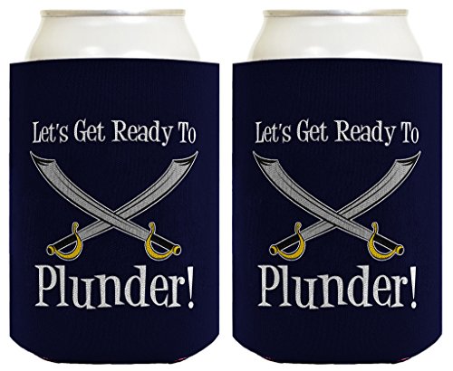 Funny Beer Coolie Let's Get Ready to Plunder Pirate Swords Nautical Sailing Boating Gift 2 Pack Can Coolie Drink Coolers Coolies Navy