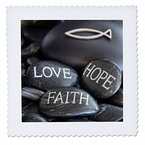 3dRose Black Pebble Engraved, Love Faith Hope Quilt Square, 10 x 10"