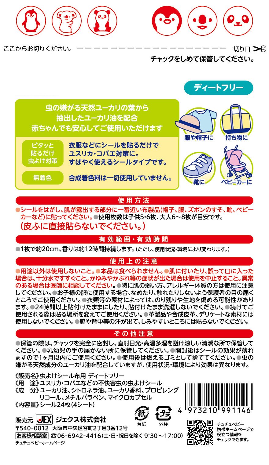 To a son of 2 years old. Unlike spray etc., since it does not touch the skin directly, it can really help squeezing skin. Especially spraying in areas with rashes and roughness, even adults are in pain of hell ... So, we used the patch type for a long time, but last year we had the character priority of Pooh and Cars, I used an insect repellent patch α. Earth's insect repellent patch was pretty smelly but it was quite difficult to get in the car if you were going to drive in the pasted condition. However, there is a memory that I had patience and driving with my parents whether they are stabbed or not, (lol Meanwhile, this product of Tutu baby is the same eucalyptus fragrance, but it is not so much artificial scent, My son also gladly attached the penguin, Koala, and Panda who are also cute patterns.The companion of the package is compared without any kind of mind Mita, insect repellent patch α was made in Korea, this product was made in Japan It is certain that I do not blindly believe that it is made in Japan, but from now on this year from this year we will use insect repellent life I would like to send it.