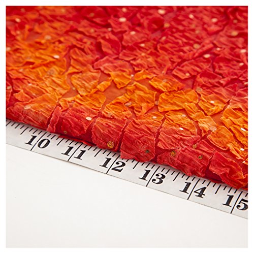 - 58 Inch x 5-Yard Lot of Orange/Red Mesh w/ Holographic Circles Fabric. The width listed is the "usable width"