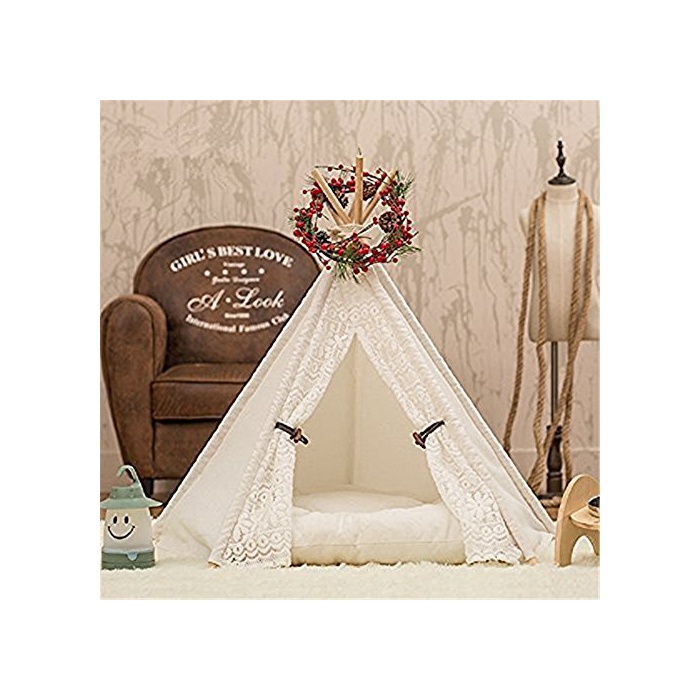 Milkee 애완동물 텐트 가건물 소꿉놀이 하우스 플레이 텐트 개/고양이 소꿉놀이 희 레이스 소형 개와 고양이용 실내복 떼내어 가능 T pea 비시 초귀여운 말씀하셔라 후숀