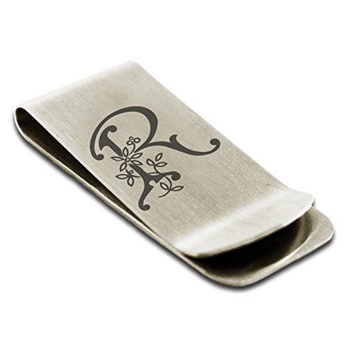 (Tioneer)/Accessories/Wallets, Money Key Organizers/DIRECT FROM USA/Stainless Steel Letter R Initial Floral Monogram Engraved Money Clip Credit Card Holder