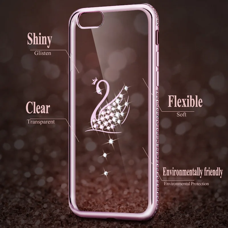 Material:Shiny Plating & Glitter Diamond Slilicone Back Capinha Cover