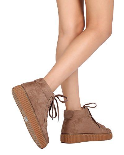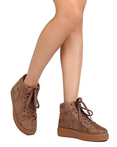(Qupid)/Women's/Classic Fashion Sneakers/DIRECT FROM USA/Qupid FF61 Women Faux Suede Lace Up High Top Flatform Sneaker - Taupe