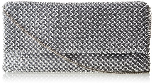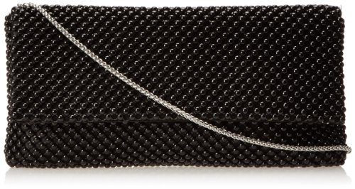 Beautifully beaded detailing. Top flap with a magnetic-snap closure. Drop-in shoulder chain. Flat base to provide upright structure. Interior features a multifunctional slip pocket.