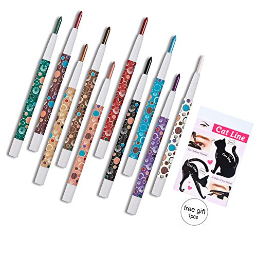 -. Title : Pretty See Eyeliner Pencil Rotatable Shimmer Eyeshadow Pen 10 Colorful Eyeshadow Stick with 1 Cat Eyeliner Stencil