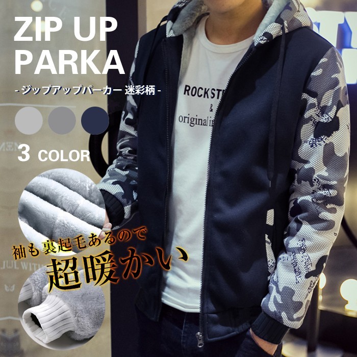 | 商品名 | 裏起毛パーカー メンズ ジップアップ 迷彩柄パーカー カモフラージュパーカー 厚手パーカー 秋冬パーカー ファスナー 防寒 定番 シンプル |