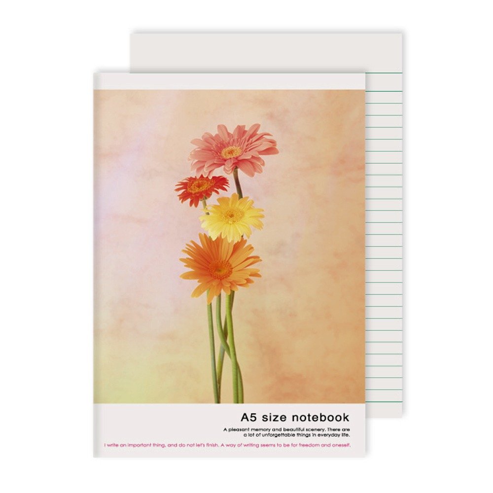 ● Cover design adopting popular photograph pattern ● Ruled lines of the text are easy to read and easy to write 6.5 mm green line, easy to open binding