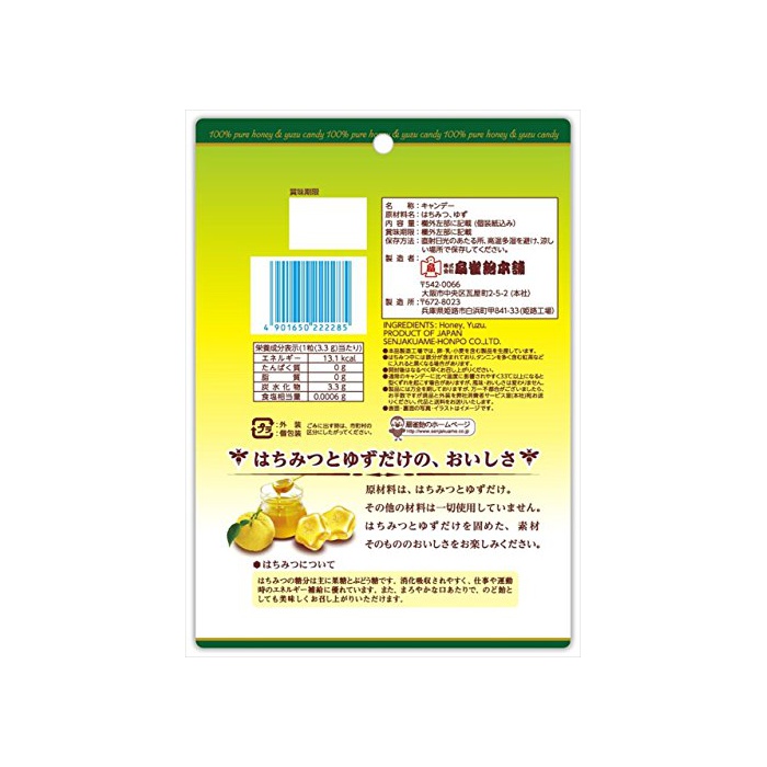 원본상품명: 扇雀飴 はちみつとゆず100%のキャンデ 51g×6袋
