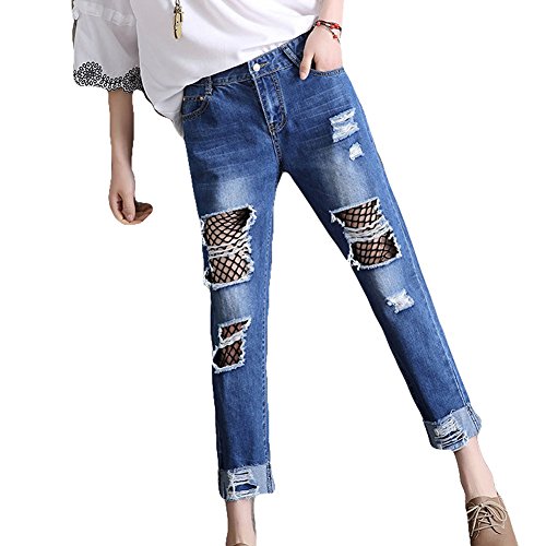 -. Feature : メイン素材: デニム カラー:ライトブルー ダークブルー / 今季トレンドのメッシュ切り替えデニムパンツが登場!超個性的な着こなしで注目度アップ!おしゃれでセクシーなシルエットです。どんなトップスとの相性が抜群! 編み目から見える素肌が女性の美しさと妖しさ引きたてる網ジーンズです。 脚をセクシーに演出する魅惑の網タイツ。ダメージ加工でこなれ感のあるコーデが楽しめます。 / シックな網タイツと裂けた穴のデザインは、あなたにファッションを追加する、 理想的な任意のワードローブを補完できます。 大人カジュアルに着こなせる、少しゆったりとしたシルエットがポイント。1着持っているとコーディネートの幅が広がる、普段使いしやすいデザイン! / 前とバックにポケットを付きデザインで、スマホや小物を入れたりとあると助かる便利ポケット。 学生さんの通学や、アウトドアやレジャーなどのカジュアルシーンにもピッタリです。 シンプルなデザインで飽きずに長く活躍してくれるアイテムです! / 商品写真はできる限り実物の色に近づけるよう加工しておりますが、お客様が使用するパソコンのモニター設定や部屋の照明により多少、色の変化が感じられる場合がございます。