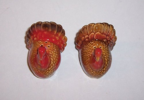 "ABC Products" - (NEW LOWER PRICE) - Set of Ceramic - Turkeys Salt And Pepper Shakers - For All Year Round Use - ( Primitive Yellow Green Glazed - Primitive Red Orange - Accented In Brown Green)