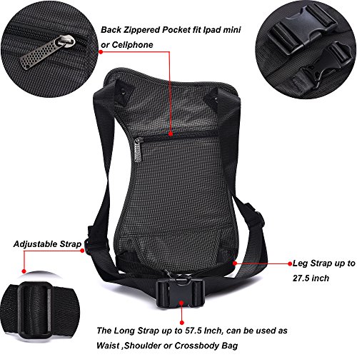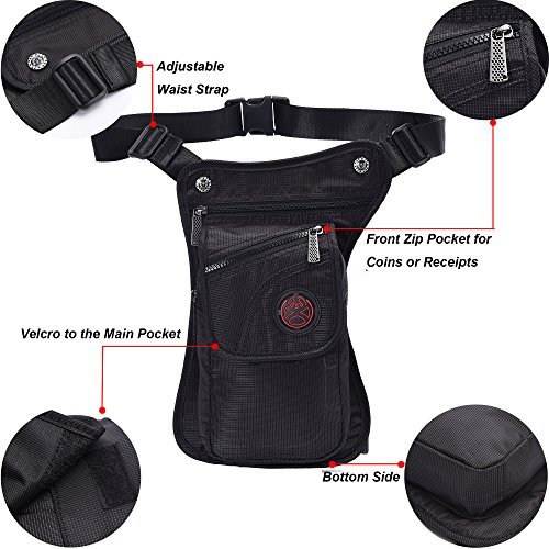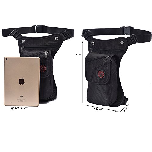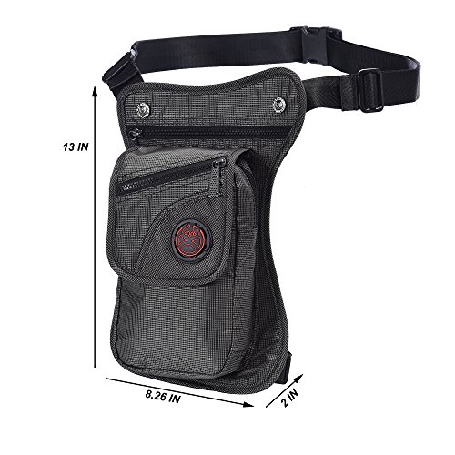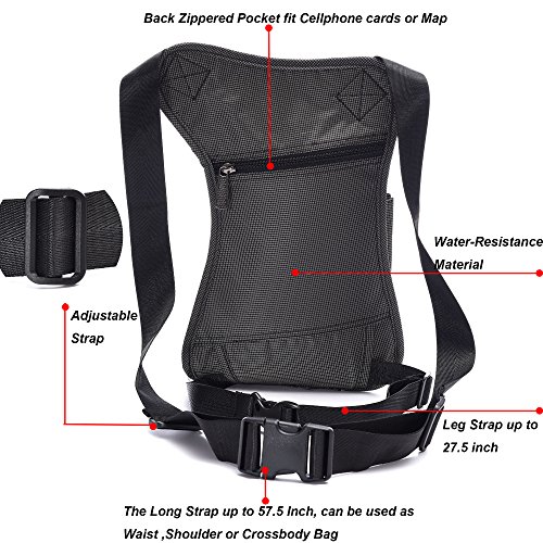 Product Description Information: This waist/leg bag is a little water-resistant, breathable, lightweight and convenient to carry. With 5 zipper pockets and 1 pouch for smart storage. A wonderful accessory for running,cycling, hiking, traveling and other outdoor activities. 1.It is made in high quality NOYLON material. 2.Fit for both men and women. 3.The main pocket can store your journal, gloves and some small tools. 4.The other smaller pockets holds your pen and some trinkets for trading. 5.Four ways:leg bag ,waist bag, shoulder bag and cross-body bag. It is light,water repellent well-made sling-style bag with well Sewn Craftsmanship. It is also deal for outdoor sports (hiking, camping, climbing, cycling, etc) and travel use. BUY CONFIDENTLY with our 100% Money Back Guarantee - If for any reason you are not satisfied with our product you will receive a full refund no questions asked and hassle free. If you need help or have any question, feel free to contract us. we will do our best to help you 0