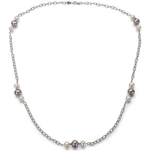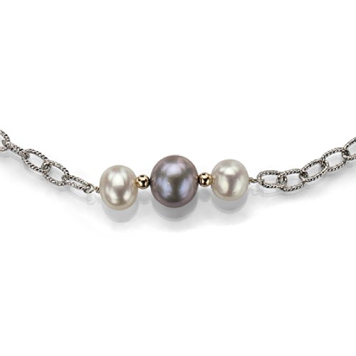 This Is A Fashion Sterling Silver 8-8.5mm White Freshwater Cultured Pearl and 10-10.5mm Dyed-grey Freshwater Cultured Pearl Textured Link Chain Necklace 30" Length, Secuerd with Lobster Claw Clasp. Please Contact Us if You Do Not See What You Need.