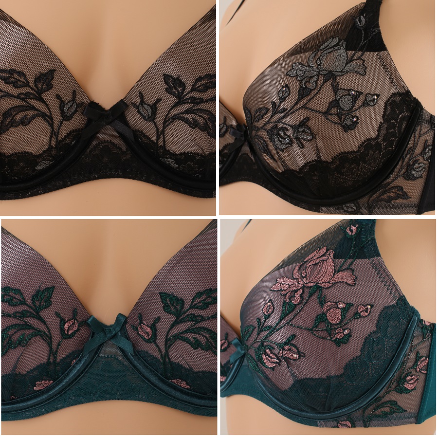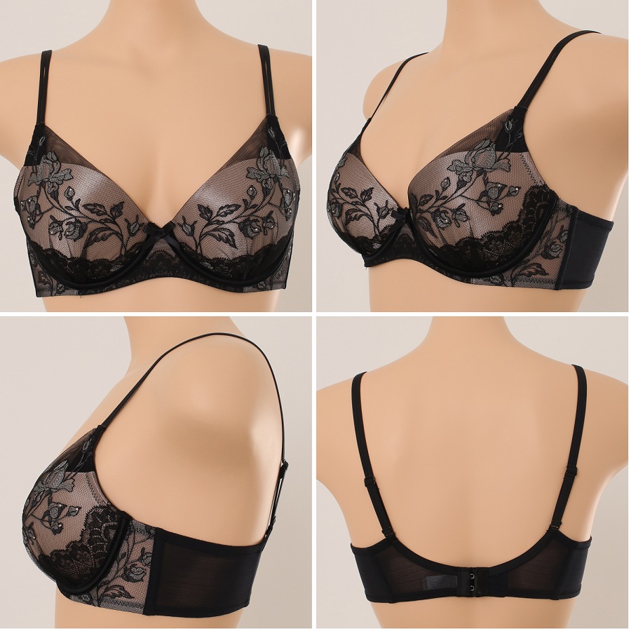 플라워 포인트 자수를 컵부분에 얹어준 몰드브라로 화려한 감각을 더한 제품입니다.