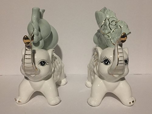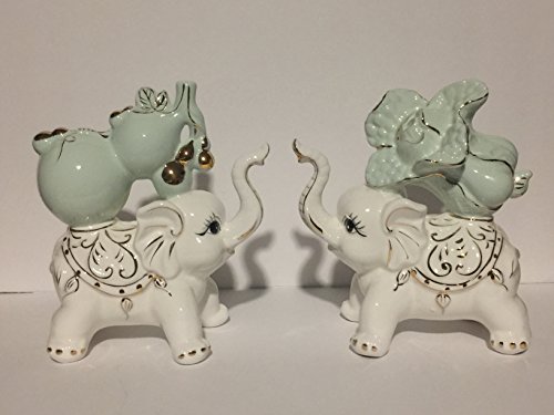 ProductsInsanity Porcelain and Light Green White Elephant with Gold Accent (Set of 2)