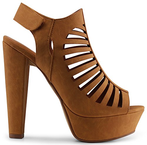 -. Feature : Heel height: 5", platform measures approximately: 2" / Peep toe, chunky heels, lightly padded insole and soft interior lining / Textured outsole provides non-skid traction for added stability, effortless and easy-to-put-on / Smooth premium vegan faux leather, slingback cut-out design and velcro closure for easy on/off / Casual, sexy, stylish, trendy, and makes a great gift for everyday wear!