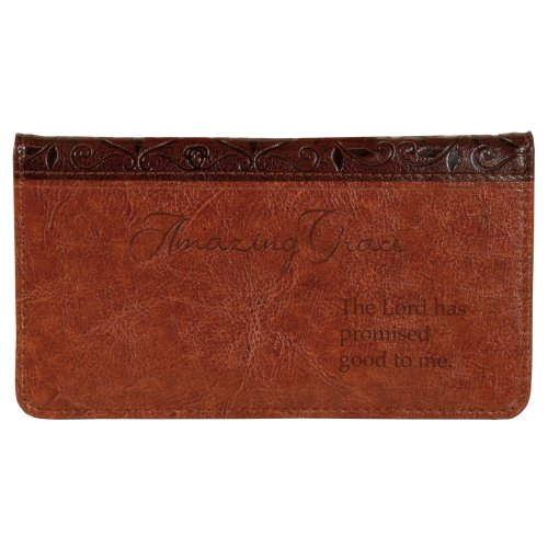 Studio : Christian Art Gifts Publisher : Christian Art Gifts Binding : Apparel Product Description Our "Amazing Grace" Inspirational Checkbook Cover isn't just good looking, it works double-duty with built-in, billfold functionality! With an inside slip pocket, 3 credit card slots, an ID card window, plastic divider for duplicate checks and a pen loop, this accessory holds all that you need for banking, paying and record keeping. Lyrics from the 4th verse of the beloved hymn are debossed into the front and the spine and back are embossed with a Florentine inspired design. The rich brown cover is constructed of quality man-made material imported from Italy, with the look and feel of real leather (trade name LuxLeather). 0