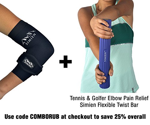 SIMIEN Elbow Brace + Sleeve Compression Combo (1-count each) - LARGE - Reduces Inflammation for Tennis Elbow, Golfer's Elbow, Tendonitis Pain - 88% Copper Sleeve - E-Book