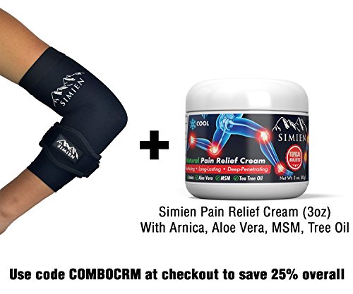 SIMIEN Elbow Brace + Sleeve Compression Combo (1-count each) - MEDIUM - Reduces Inflammation for Tennis Elbow, Golfer's Elbow, Tendonitis Pain - 88% Copper Sleeve - Results or
