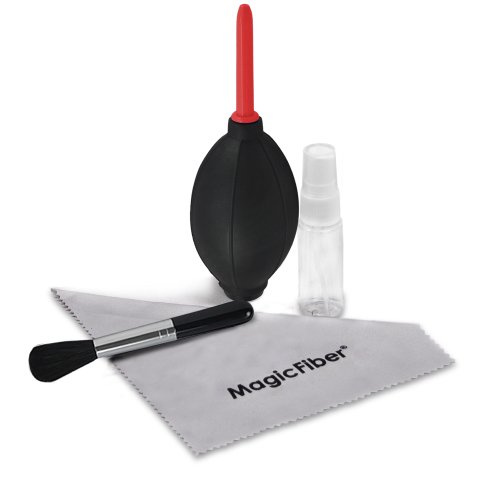 - Includes: High Capacity Air Blower, Empty Spray Bottle, Lens Cleaning Brush.