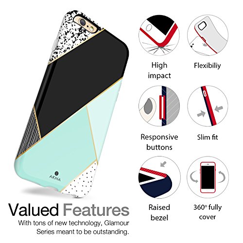 Beware : Only Place Order From - Akna Inc.,we never authorized anyone to sell Akna® case. Buyers already complain they get knock off, it's just waste of money. Redesigned Glamour series is in a whole new level. Eye-shape camera cut-out, matches with all patterns and precisely works with iPhone camera. fingeReaction® technology is our very first patent. It provides unbelievable button responsive, every time you press buttons, it's absolutely a joy. Raised lip is redesigned. We make it 3mm height, so iPhone screen is surrounded nice and safe. Even you drop iPhone a lot, it won't be shattered. We also keep some very popular features such as stylish patterns, glossy coating,flexible TPU material that easy install and remove,etc.. You really want this case, 'cause it's way better than any other cases in the market.You don't believe? Try it, the case will speak itself. This case is ONLY for iPhone 6 & iPhone 6s - 4.7" iPhone, NOT COMPATIBLE with iPhone 6 plus or iPhone 6s plus.Feature