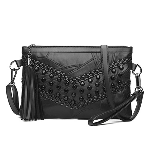-. Feature : √ A clutch size purse made from Genuine Leather. A big compartments with a wrist strap and shoulder strap for multipurpose carry. / √ Leather Crossbody Purses Size: 25 * 18 * 1.5cm / 9.8 * 7.1 * 0.6inch; Wrist Strap Size: 40cm / 15.7inch; Shoulder Strap Size: 136cm / 53.5inch. / √ Multi-purpose pockets: 2 credit card slots + 1 side zip pocket + 1 main compartment - for keys, credit cards, small cosmetics necessities, lipsticks, chapsticks, smartphones, etc. / √ This clutch is designed for you to keep your makeups/cash/cards and smartphone oraganized well and easy to use. A cute Tassel Zipper. Large capacity yet not bulky. / √ Package Included: 1 * Clutch Bag, 1 * Wrist Strap, 1 * Shoulder Strap.