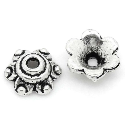 300pc Antiqued Silver Flower Bead Caps 2/8"x 2/8" Beading Supplies