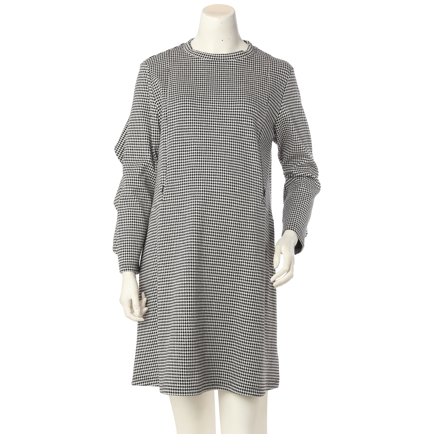 | 그래픽 트위드 문양의 신축성있는 소재의 임신수유 겸용 지퍼 원피스입니다
