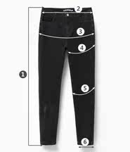 | 尺码 | ①裤长 | ②腰围 | ③臀围 | ④大腿围 | ⑤膝围 | ⑥脚围 | ⑦前裆 |