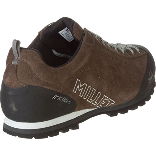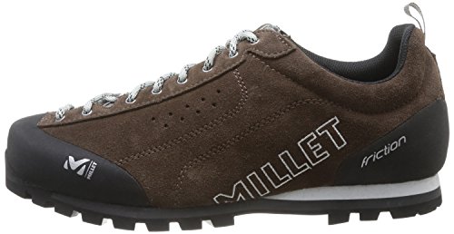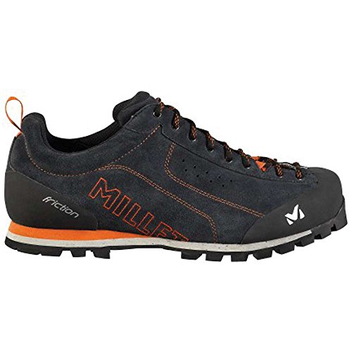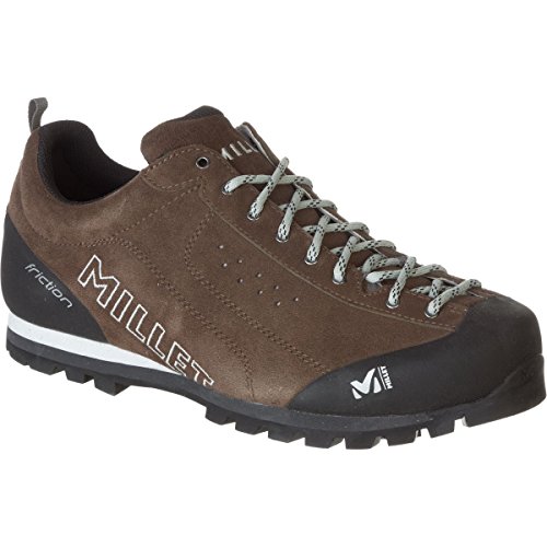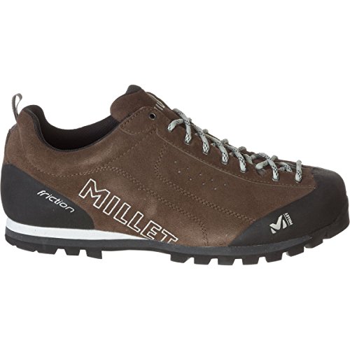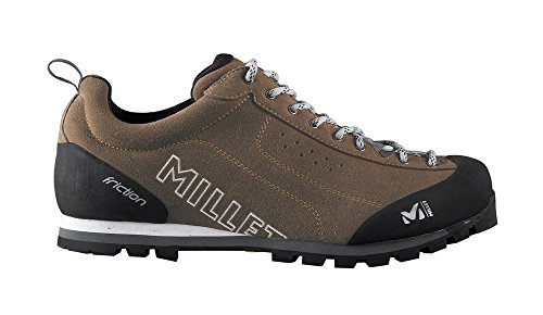 Studio : Millet Publisher : Millet Binding : Apparel Product Description FEATURES of the Millet Men's Friction Shoe Rugged, versatile, durable, comfortable Alpine approach boot Low-cut upper in reinforced leather Ergonomic Approach Fit Unrestrained flex Quick, precise lacing system Rubber rand at toe and heel Reinforced toe area Dual-density midsole for shock damping Hygiene insole with shock-damping, dual-material footbed Vibram Multigrip coloured outsole with Climbing Zone for toe grip SPECIFICATIONS of the Millet Men's Friction Shoe Average Weight: 1/2 per pair: 480 gram Approach fit / Fluid Flex Semelle Vibram Friction Ecostep Eva Micro Recyled 1.8 Split leather WR 0