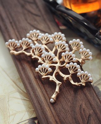 -. Title : 【ノーブランド品】 和テイスト 美しい パール風 松の木 モチーフ アンティーク調 ブローチ