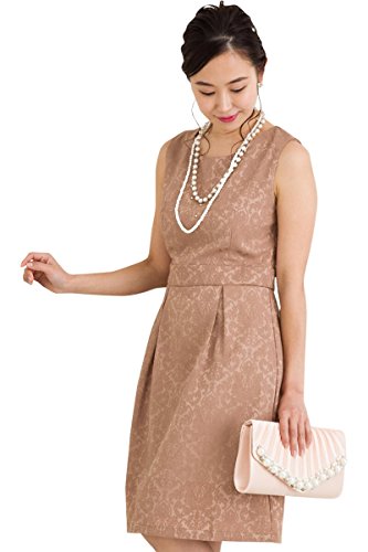-. Title : Vierge (ヴィエルジュ) ダマスク柄 ワンピース 結婚式 二次会 パーティードレス フォーマル レディース (XXL, ベージュ)