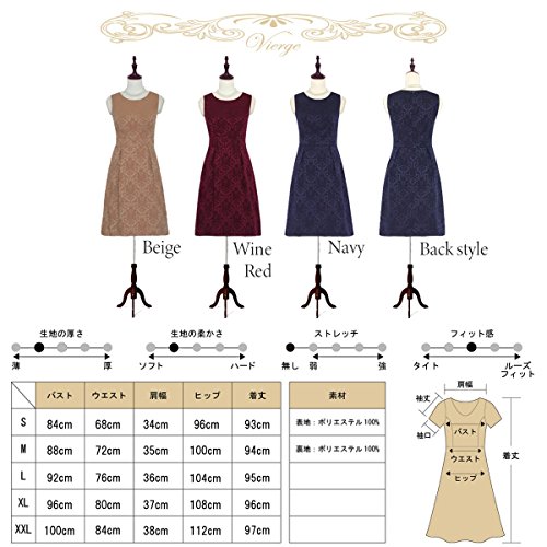 -. Feature : ☆結婚式、二次会、パーティーなどにおススメのワンピース☆ / 定番Aラインシルエットは、きれい見せ効果大!アンティーク感のある柄が上品もUPしてくれます。発送直前までハンガー保管の商品ですので、お届け時にたたみジワの心配はありません。 / 【サイズ】S(7号)・M(9号)・L(11号)・XL(13号)・XXL(15号)※少し、小さめの作りになっております。 / 【カラー】ベージュ・ワインレッド・ネイビー / 着用シーン:結婚式,披露宴,二次会,会食,食事会,謝恩会,女子会,入園式,卒園式,入学式,卒業式,同窓会,発表会,演奏会,婚活パーティなど