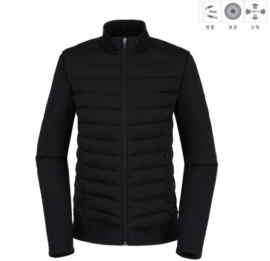 소매와 등판은 기모 니트, 앞판은 패딩이 충전된 우븐소재를 적용하여