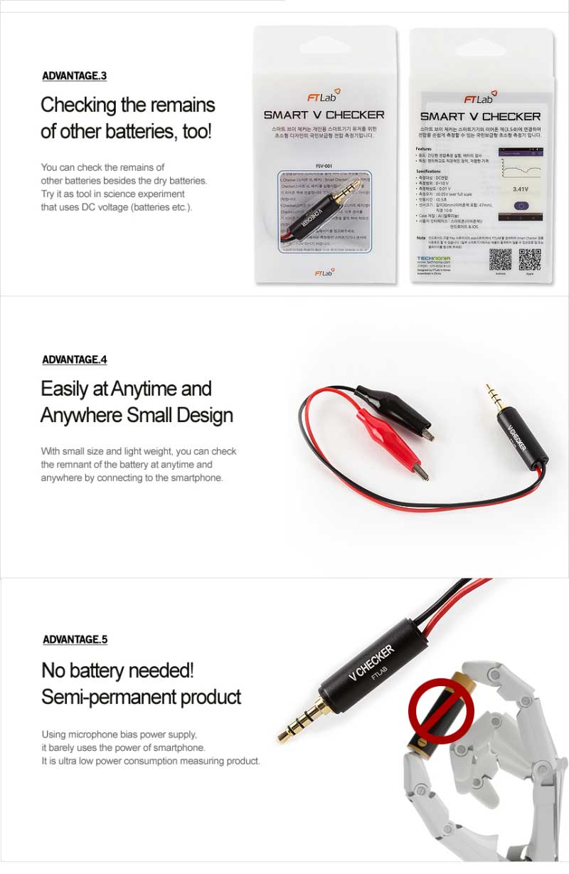 -Measurement Error <0.05V depends on the Smartphone Model, and the data gets by no brand smart phone may not as accurate as brand phone, some may cannot work because of the quality.