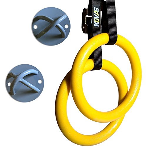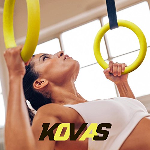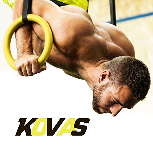 OLYMPIC LEVEL RINGS –Kovas gymnastic rings are highly durable with non-slip textured grip. Includes high weight capacity adjustable straps with non-slip buckles, heavy duty steel mounting hooks included.