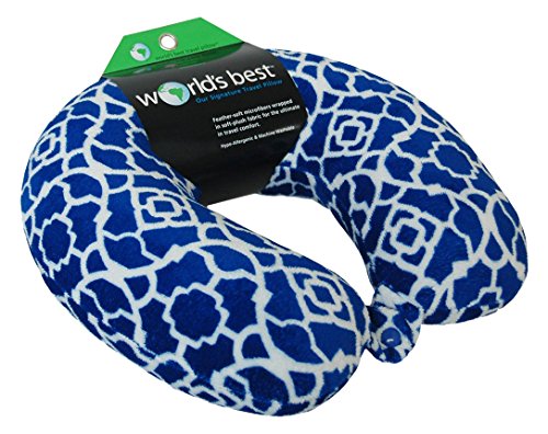 World's Best Feather Soft Microfiber Neck Pillow, Cobalt Blue Trellis