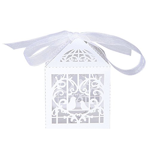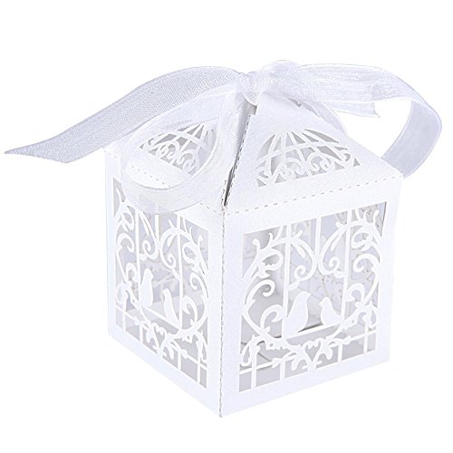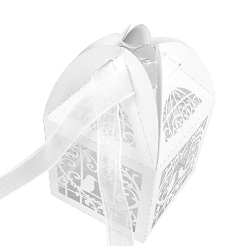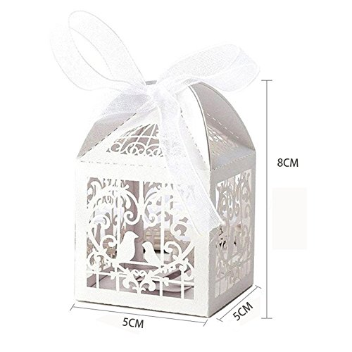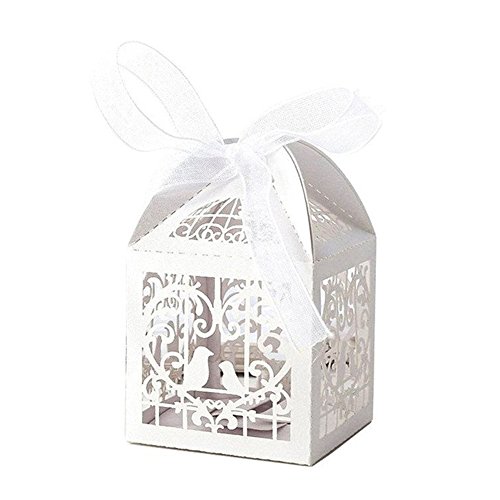 Laser Cut Pearl Paper Candy Boxes with Ribbons,Gift Box for Wedding Party Birthday Decoration Favor, 50 pcs(Classical Bird,White)