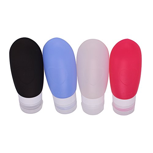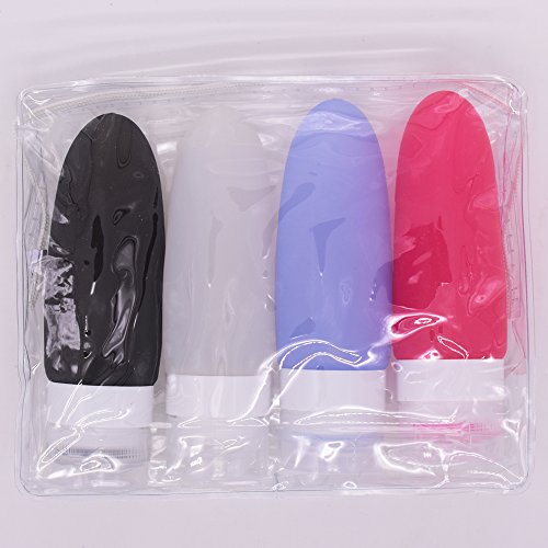 Newerlives 4 Pack LeakProof Travel Bottles,Portable Food Grade Squeeze Silicone Liquid Travel Bottle For Shampoo, Conditioner, Lotion ,Toiletries (Black,White,Pink,Blue)(3OZ)