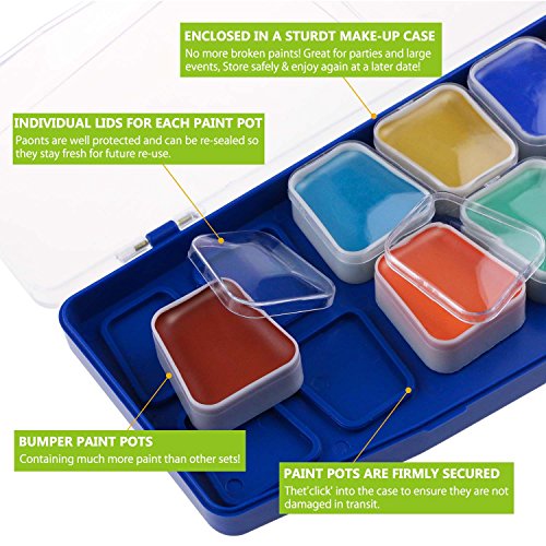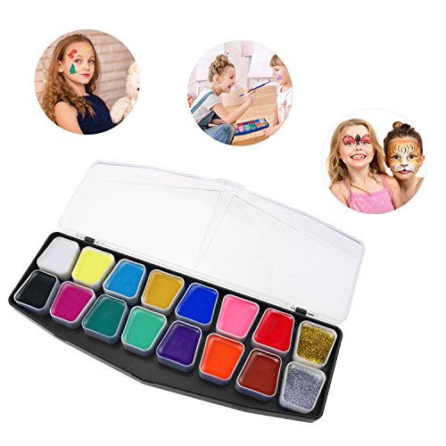 Face Paint Kit, Fixget 16 Colors Face Painting for Kid with Make-Up Case, Face Painting Party Set Cosplay Body Paint Set Non-Toxic, FDA Compliant, Water-Based