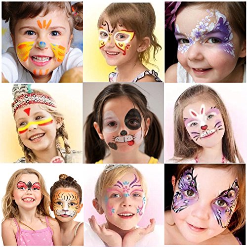 - ※ FREE PAINT STENCIL & WILD APPLICATION - This face paint kit is for free and makes it super-easy for children or face painting beginners to paint the most popular characters for boys and girls. The face painting color can blend easily with each other. Ideal to apply for children birthday party, cosplay, themed parties, sports events, role play, festivals, carnivals, Halloween makeup and child stage etc.