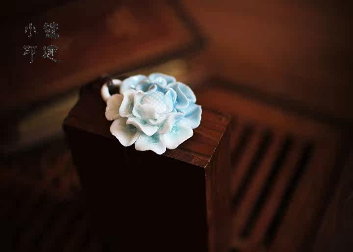 Blues peony ceramic necklace