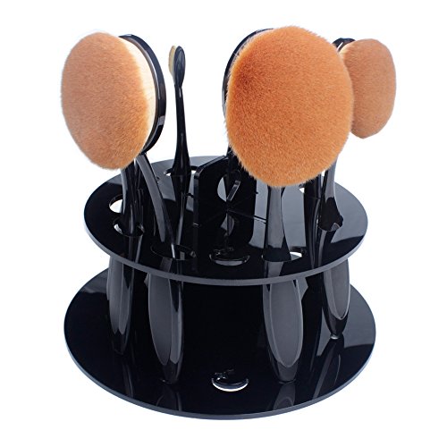 MeetU Makeup Brushes Holder Drying Rack 10 Holes for Oval Toothbrush Makeup Brushes (Black)