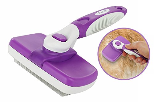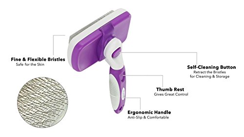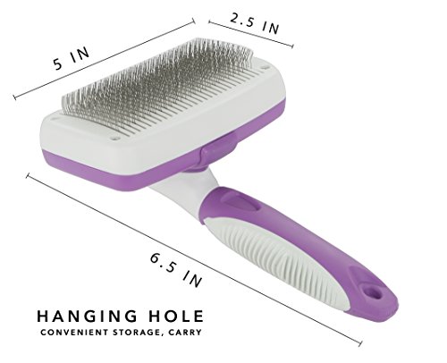 ERGONOMIC HANDLE: Enhanced with a textured non-slip plastic handle, the self clean pet brush is safe to use on pets with all hair types. Use it as a poodle slicker brush, a pomeranian slicker brush or a yorkie slicker brush.