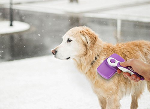 EASY PRESS BUTTON: With each passing stroke, the soft metal comb slicker brush collects loose pet hair. Simply press the button to have the retractable blade dispense the hair buildup right before your eyes!