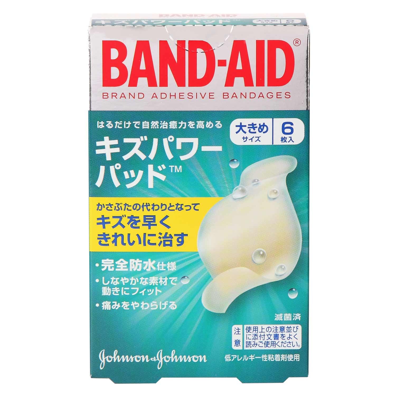 "Band-Aid Kizpower pad large size 6 sheets" keeps the optimum environment (wet environment) to cure the wound and suppresses nerve stimulation by drying.