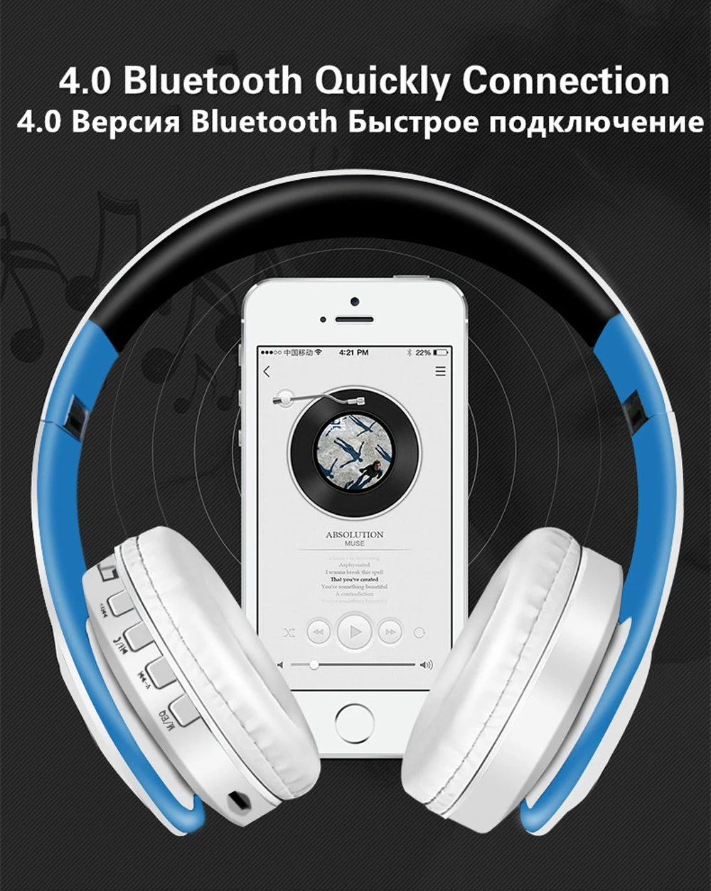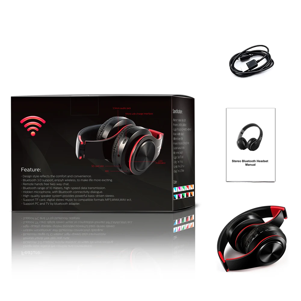 Headphones Feature 3:Support AUX 3.5mm jack play,TF/SD card
